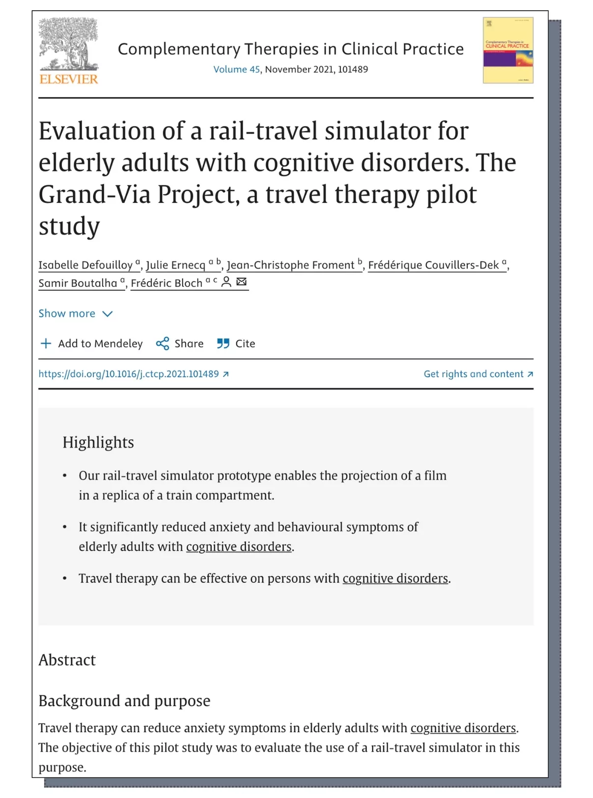 Évaluation d'un simulateur de voyage ferroviaire pour personnes âgées atteintes de troubles cognitifs.